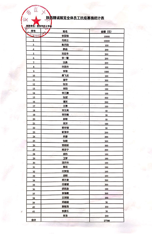 2月13日上午,陜西精誠展覽裝飾有限公司代表向西安紅十字會捐贈善款27000元,這些善款是公司全體員工為助力疫情防控盡的一份綿薄之力,用實際行動回報社會。