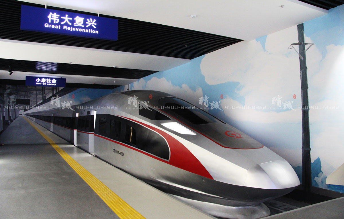 通過語音播報:“歡迎您乘坐由一公司擔當?shù)腉2018次復興號列車,本次列車是由小康社會站駛向偉大復興站......”,引導參觀者乘坐復興號高鐵模型,體現(xiàn)中鐵北京工程局一公司像復興號高鐵一樣,為實現(xiàn)中華民族偉大復興的中國夢而繼續(xù)前行。