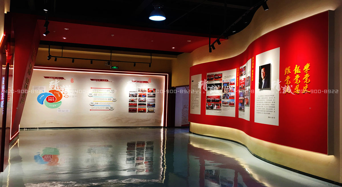 華山論劍黨建主題館坐落于陜西寶雞鳳翔縣,總展陳面積近2000平米,是一座規模宏大、設施齊全、內容豐富的非公企業黨建基地。整個主題館分為黨建之路、黨建主題館、品牌之路、黨建陣地和智慧黨建五個部分,其中黨建主題館展陳面積720平米,分為光輝歷程、紅色鳳翔、品牌發展和企業黨建4個部分,并突出了“學黨史、報黨恩、跟黨走”的核心理念。