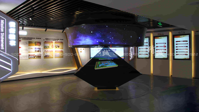 采用360全息成像技術,頂部藍天裝飾,以多媒體表現手法,呈現集團所屬公司及重點項目發展。