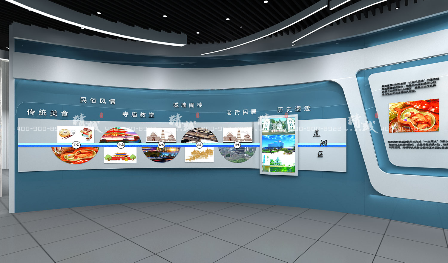 通過很有互動性的移動滑軌互動查詢系統,展示蓮湖區的歷史遺跡、老街民居、城墻閣樓、寺廟教堂、民俗風情、傳統美食等內容。