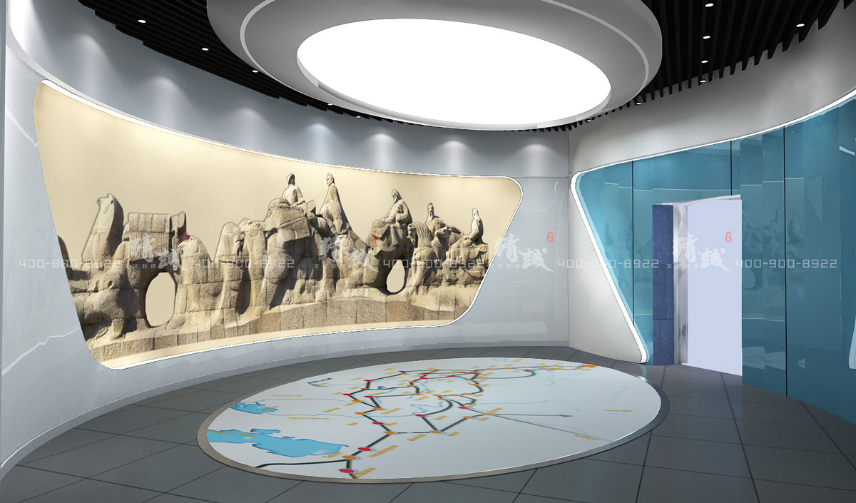 通過科技感極強的結構投影技術,展示蓮湖區的歷史典故:西漢張騫出使西域(絲綢之路群雕),展示皇城中心、宮城中心的歷史變遷。