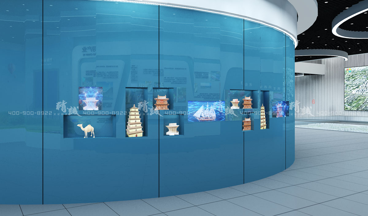 利用原有影廳外側墻面,展示蓮湖區出土文物,正面設置透明液晶屏,展示文物信息,展示手法新穎,具有很強的觀賞性。