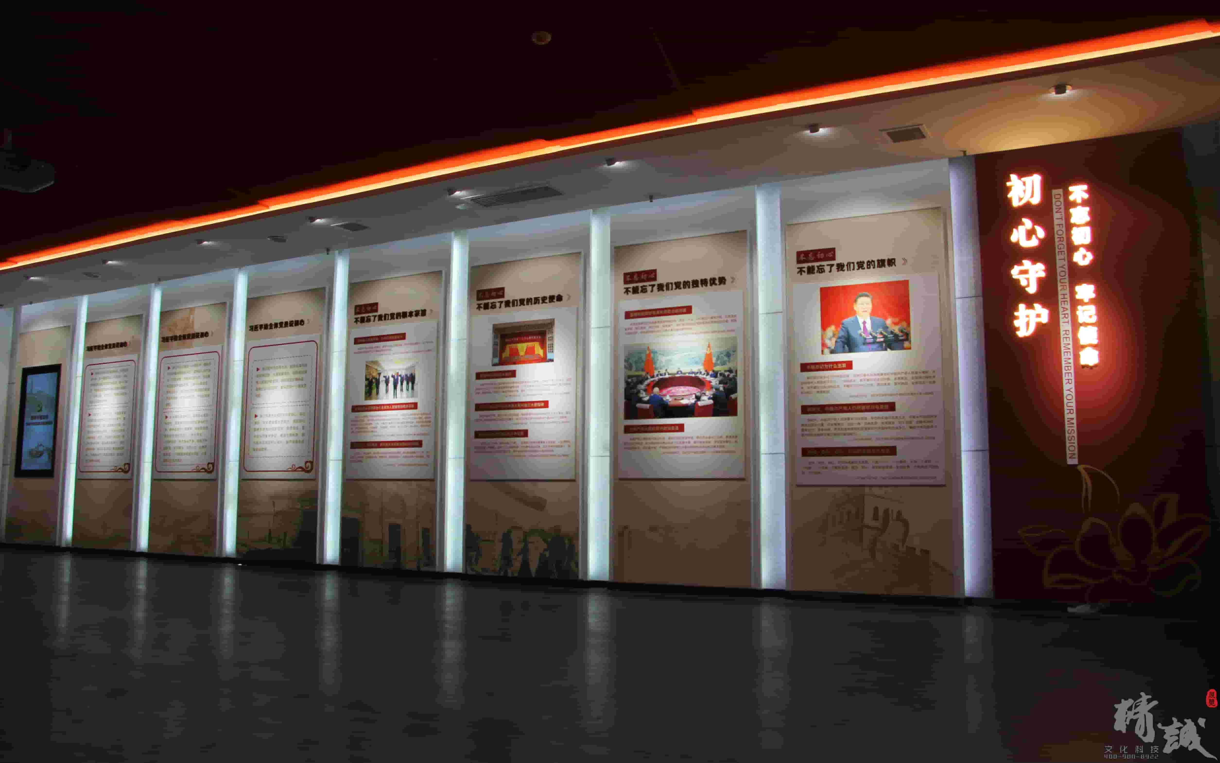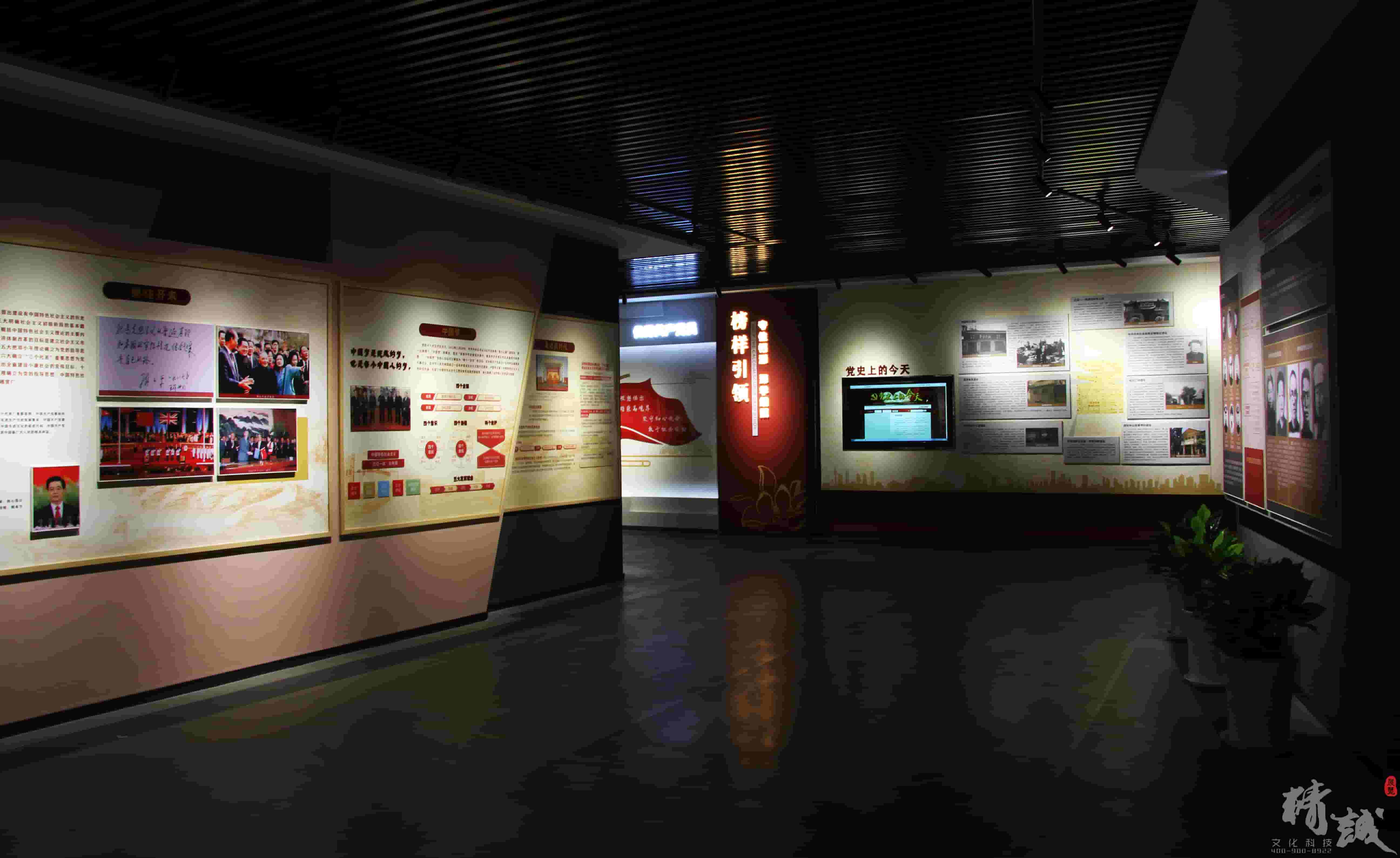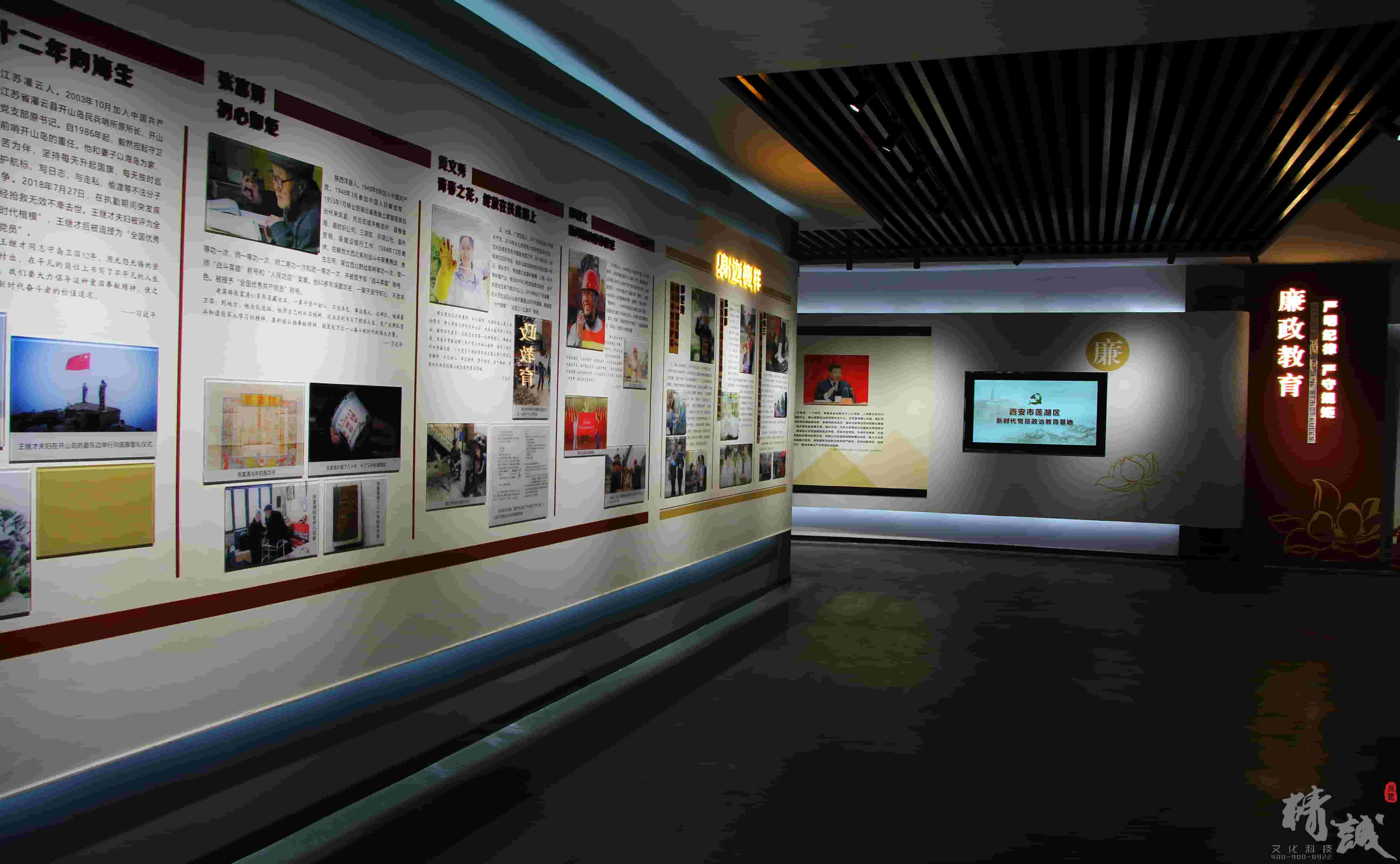 精誠展覽精心策劃設計施工專業打造的蓮湖區新時代黨性教育基地各版塊既相輔相成又各有亮點,通過層層遞進調動廣大黨員學習的情緒。清晰的內容脈絡結合人臉識別、環幕放映、互聯共享等數字多媒體技術的應用,賦予了新時代黨性教育基地更深刻的使命意義和靈魂價值。