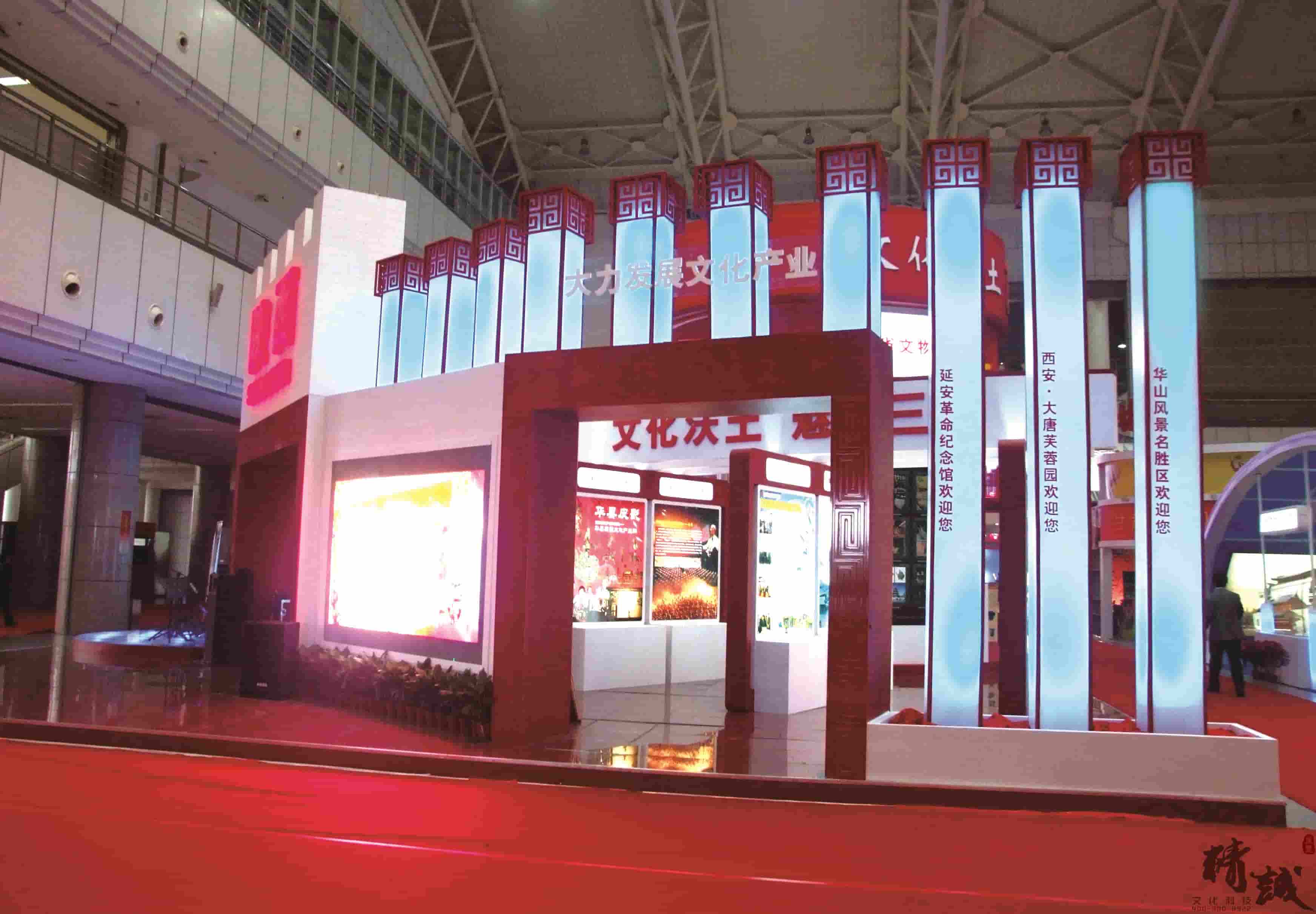 運用幾十根發光立柱作間墻,在立體空間中形成一個視覺的流動路線,整個展位顯得恢宏大度和動感十足。