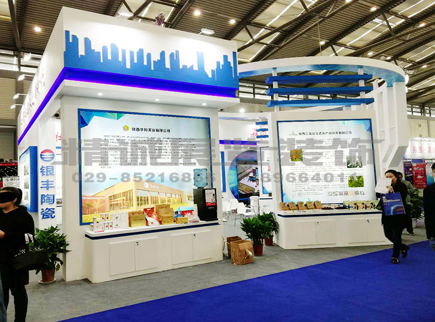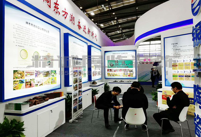 神木展位通過開敞的布局和富有創意的承重結構造型,結合燈箱、LED拼接屏,使整個展位形象充滿靈動性。同時運用科技元的素點綴,突出地方產業在科技的驅動下,日益增長的經濟狀態。