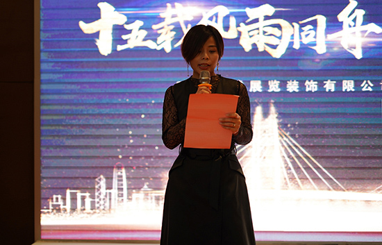 總經(jīng)理李國(guó)鋒先生上臺(tái)發(fā)言,講述了從2004年精誠(chéng)展覽成立,到2018年成長(zhǎng)的點(diǎn)點(diǎn)滴滴,以及所取得的榮譽(yù)和成就,并在最后祝賀精誠(chéng)展覽十五周年生日快樂(lè)。